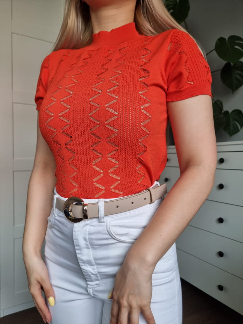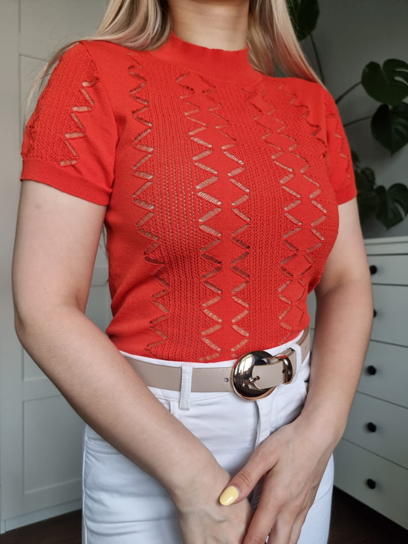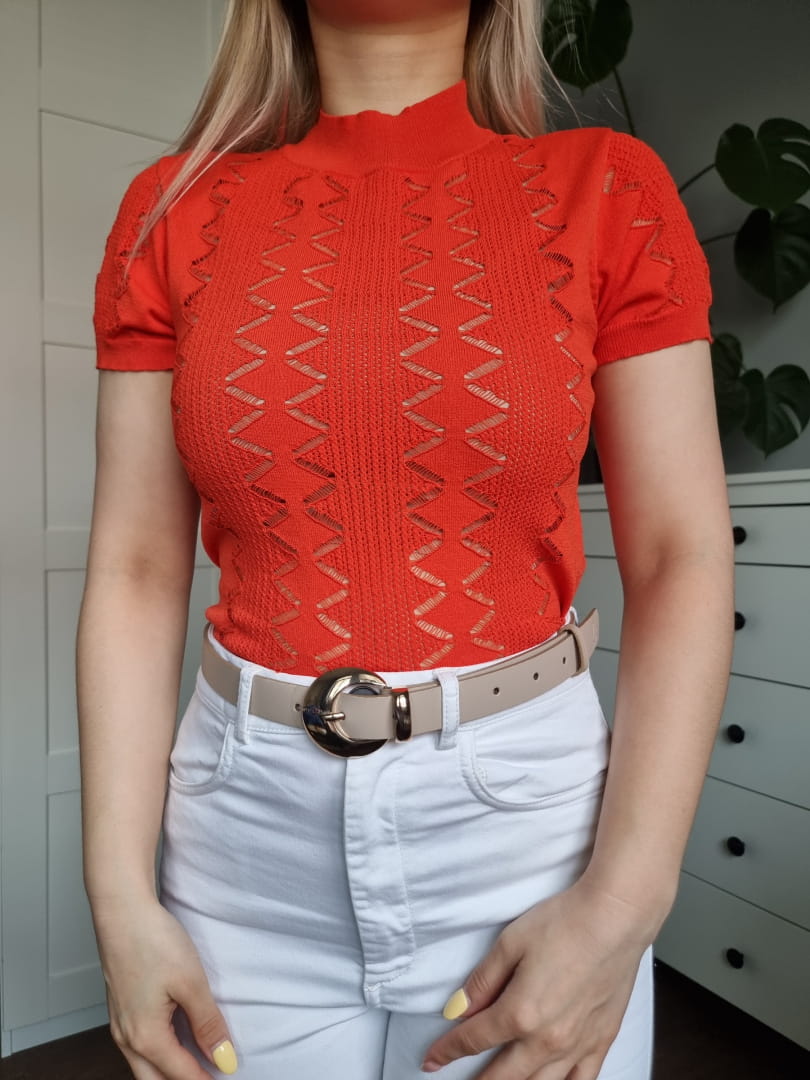 Ażurowa bluzka z półgolfem, elegancka, kobieca, r. S