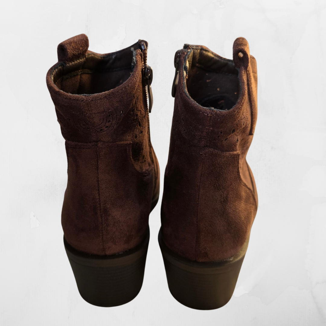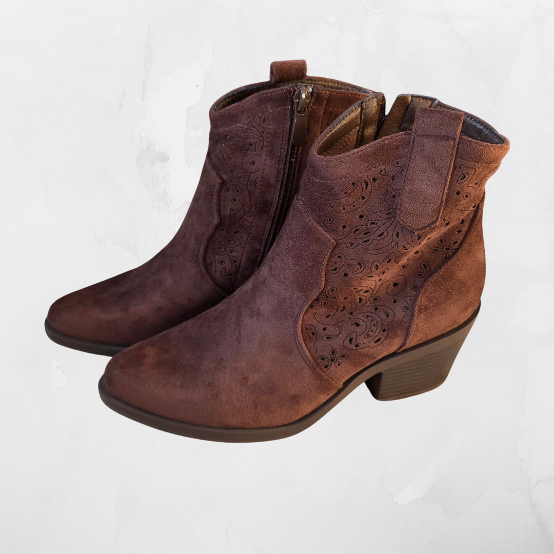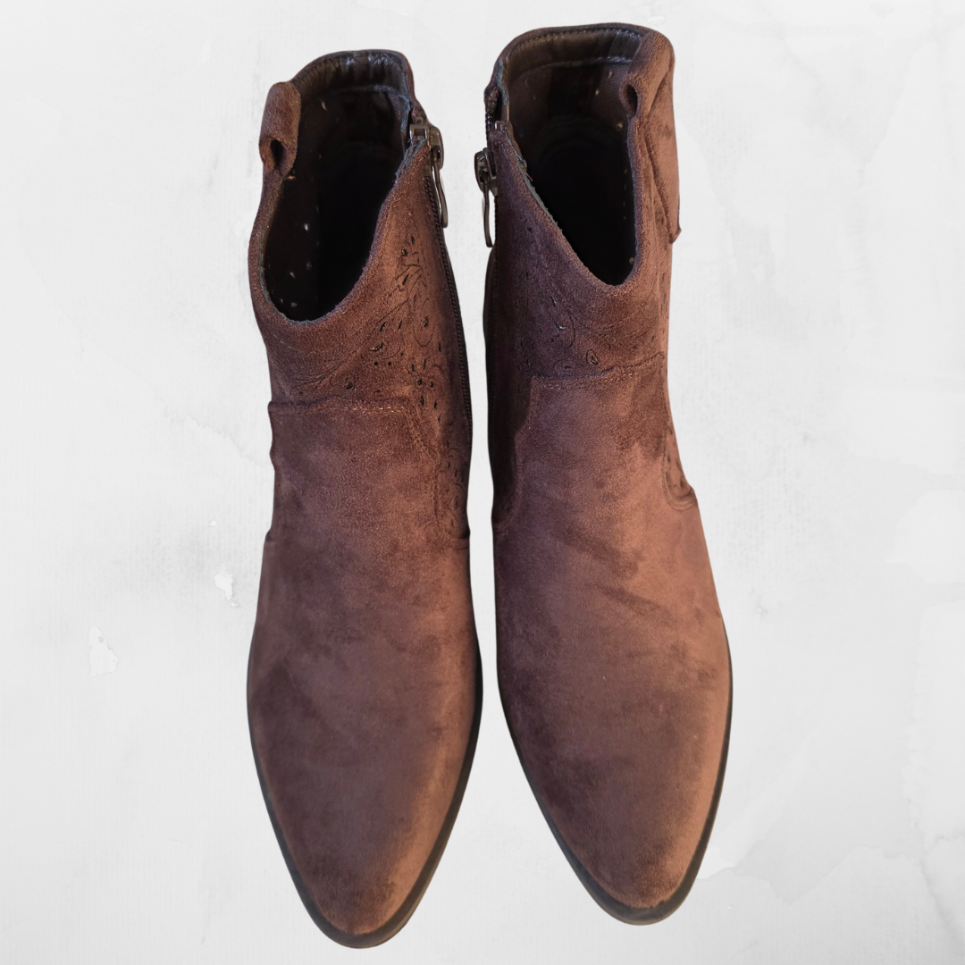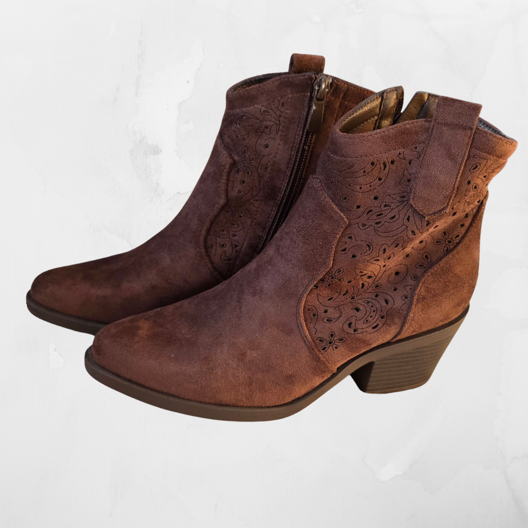Zamszowe Botki Kowbojki Ażurowe – Czekoladowy Brąz