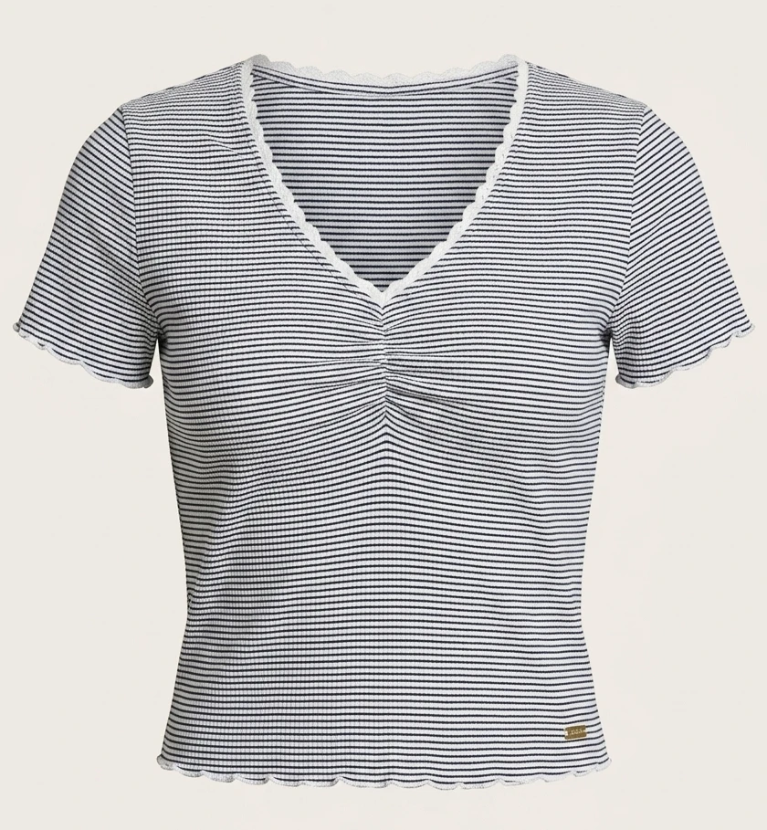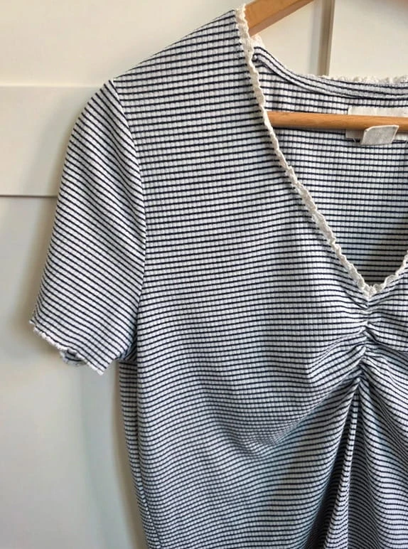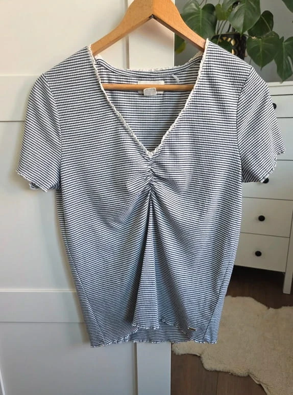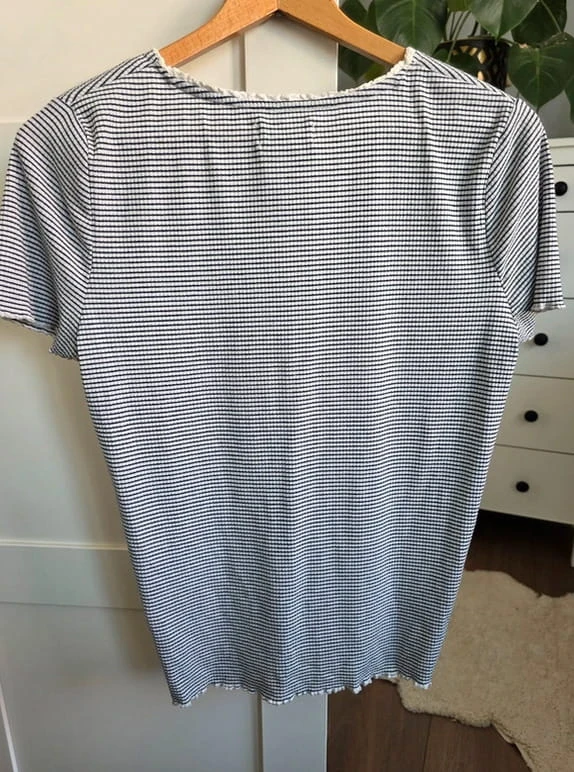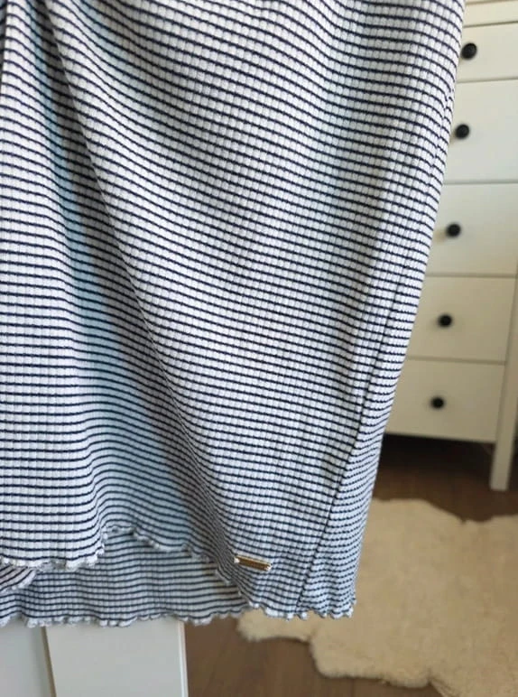 Model w klasyczne czarno-białe paski, który nigdy nie wychodzi z mody i świetnie sprawdza się w wielu stylizacjach – zarówno codziennych, jak i bardziej formalnych.