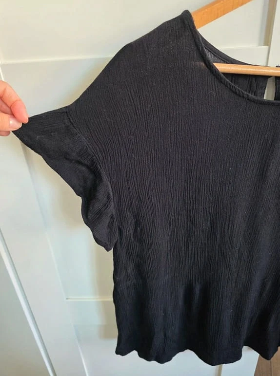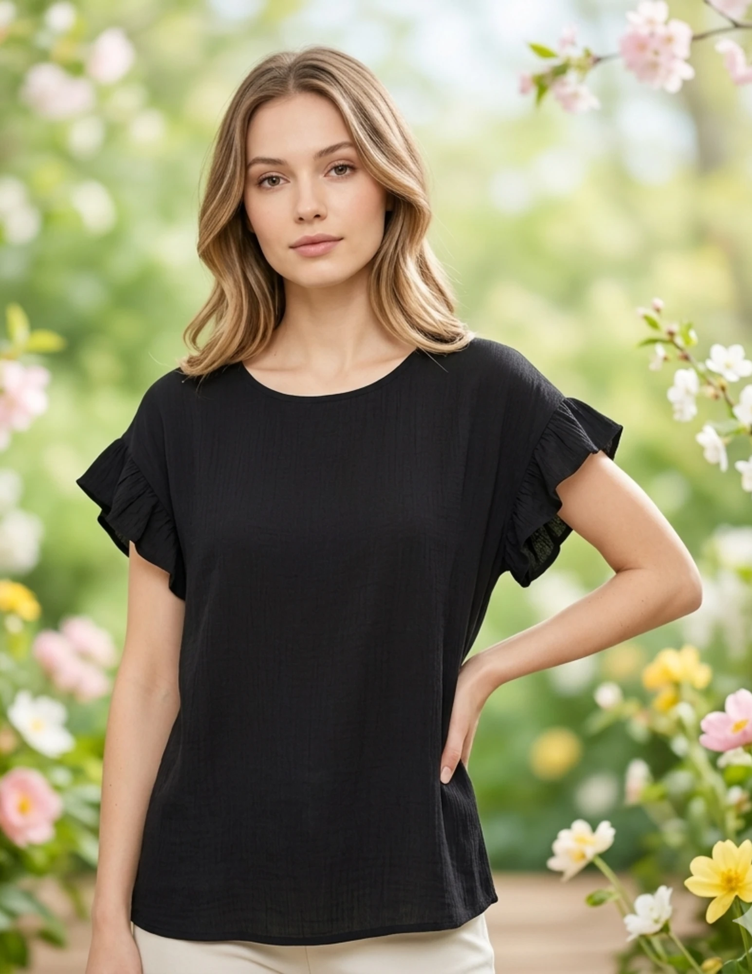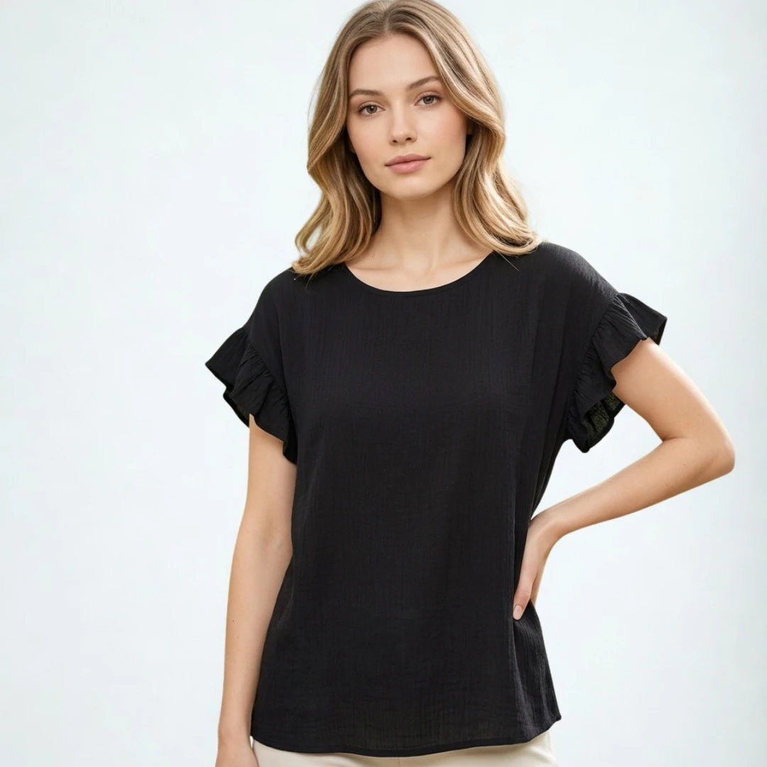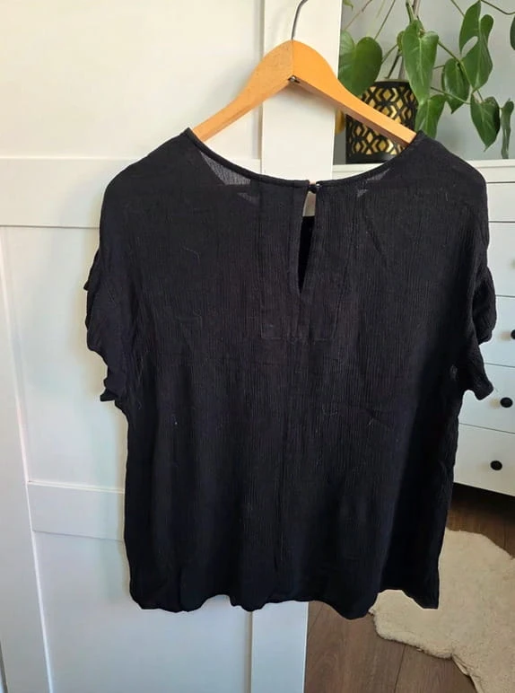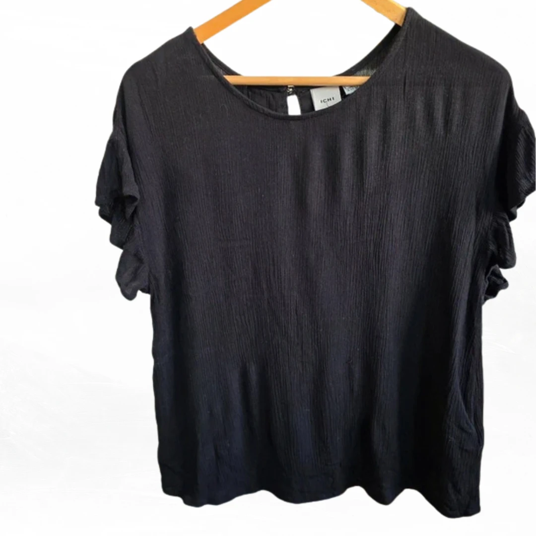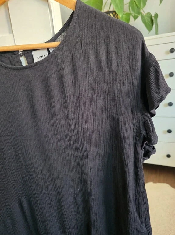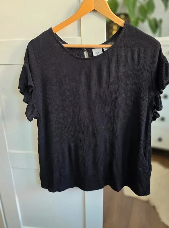 Czarna bluzka damska wiskoza falbanka zwiewna muślinowa ICHI L 40