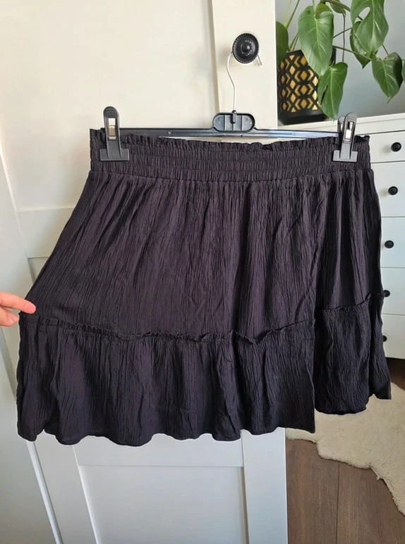 Czarna spódnica muślinowa wiskoza falbanka zwiewna lekka L lato boho