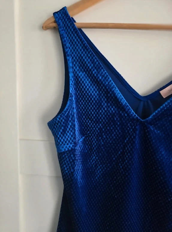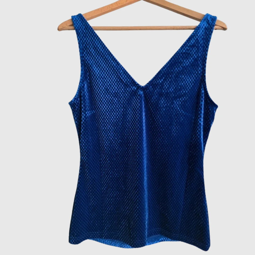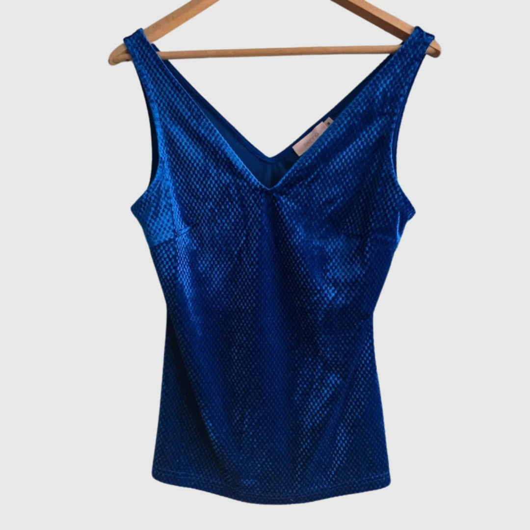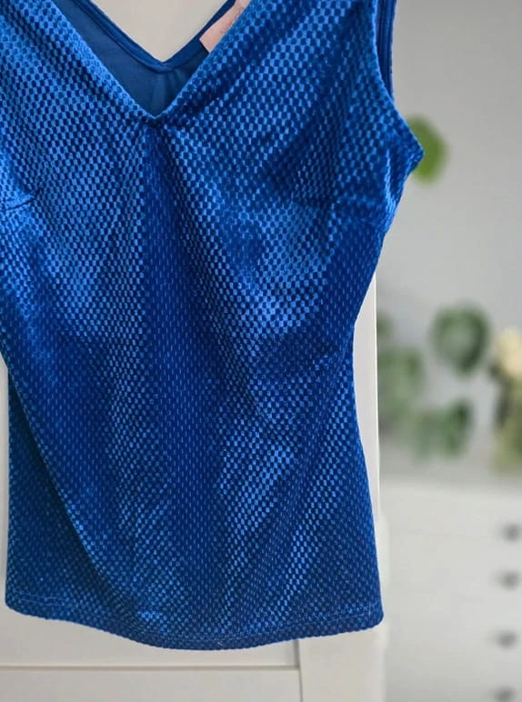 Granatowa bluzka połyskująca V dekolt top elegancka impreza S 36 Sienna