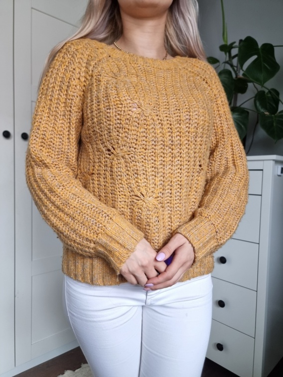 Sweterek w pięknym kolorze, nitka żółta i biała tworzy delikatny melanż.